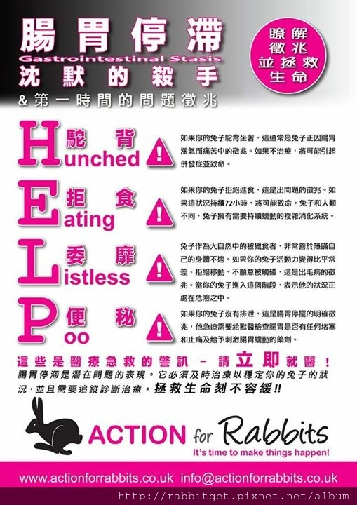 延伸閱讀 → [重要] 兔子脹氣救急法 (若發生 胃鼓脹 有快速致命的危險,誤必立刻送醫急救)