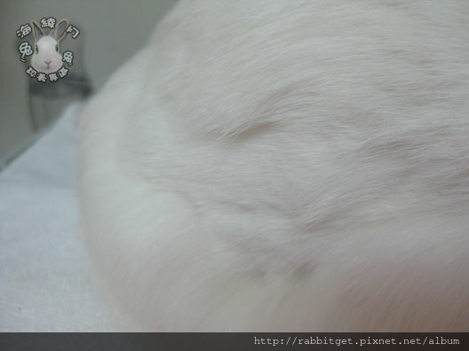 腹部的毛比較柔軟,部位也比較敏感,要小心不要剃到兔兔的乳頭(公母兔約至少有5-6對),生殖器官部位更是要小心處理,真的不會剃就不要剃喔,用剪刀小心修剪也可以。其他重點就是注意不要將兔兔的皮膚給兔受傷了。