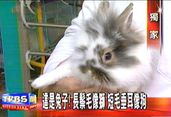 這是兔子! 長鬃毛像獅 短毛垂耳像狗 TVBS http://www.tvbs.com.tw/news/news_list.asp?no=tzeng20040214181637記者:蔡珮芸 楊子毅???? 台北???? 報導 ?